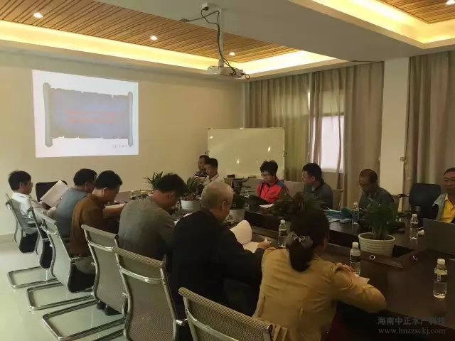 王平總經(jīng)理為考察團(tuán)詳細(xì)介紹了中正公司的標(biāo)準(zhǔn)化育苗流程、水處理系統(tǒng),以及不斷完善中的海邊引水工程、親蝦車間循環(huán)水工程、工廠化循環(huán)水苗種標(biāo)粗工程、廢水處理、水質(zhì)在線監(jiān)測(cè)裝置等。